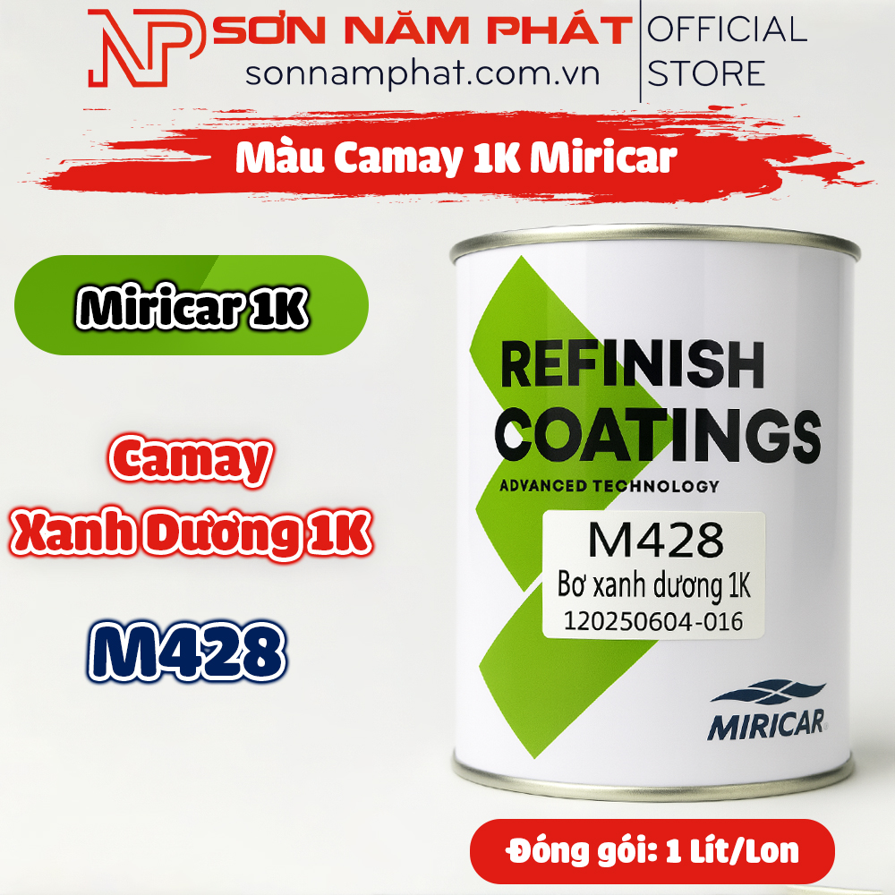 Camay 1K Miricar M428 được ưa chuộng trong các xưởng sơn xe chuyên nghiệp nhờ màu xanh dương tươi sáng, phản sáng tốt và dễ phối: