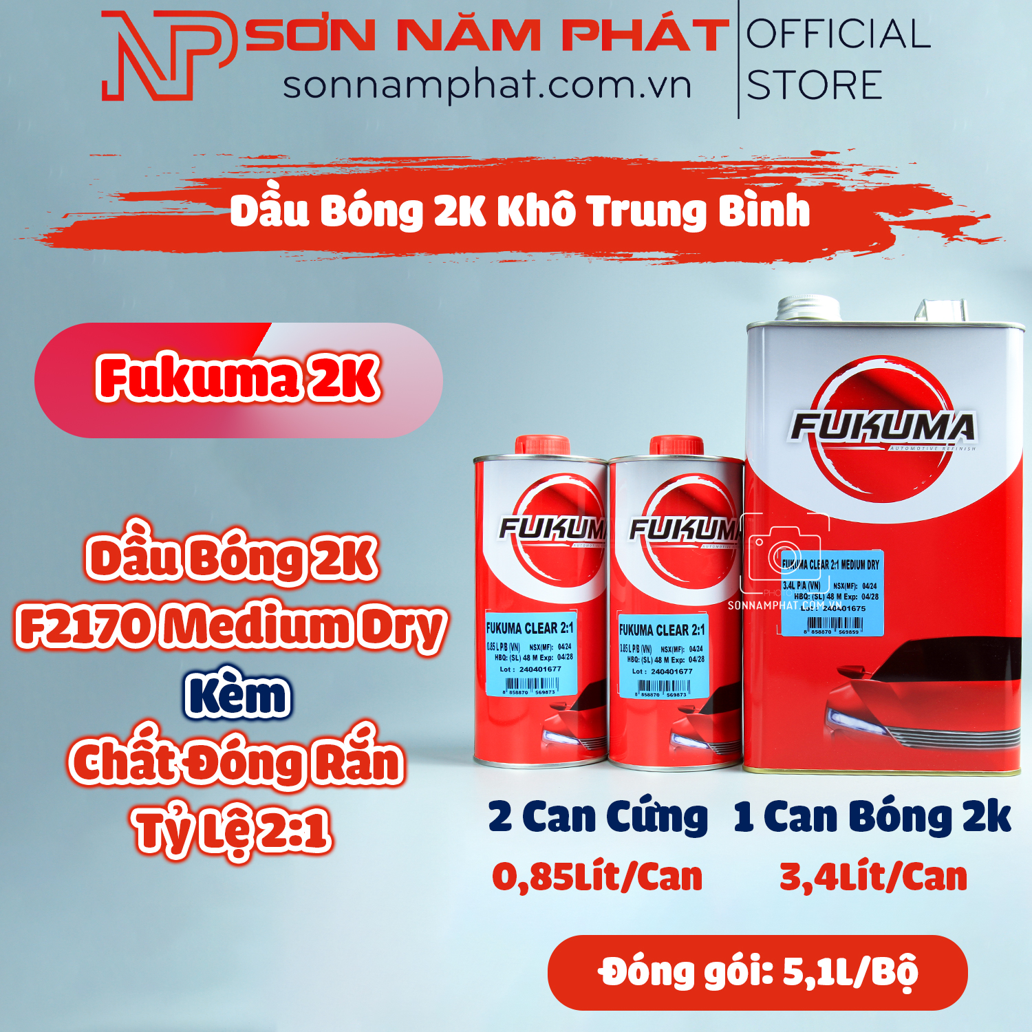 Dầu Bóng 2K FUKUMA CLEAR F2170 Medium Dry 2:1 – Khô Trung Bình, Độ Bóng Cao, Dễ Thi Công 🚗✨