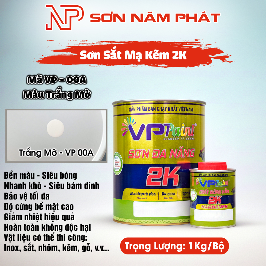 ⭐ Sơn 2K Đa Năng VietPaint VPPaint VP00A – Màu Trắng Mờ | Bộ 1kg
