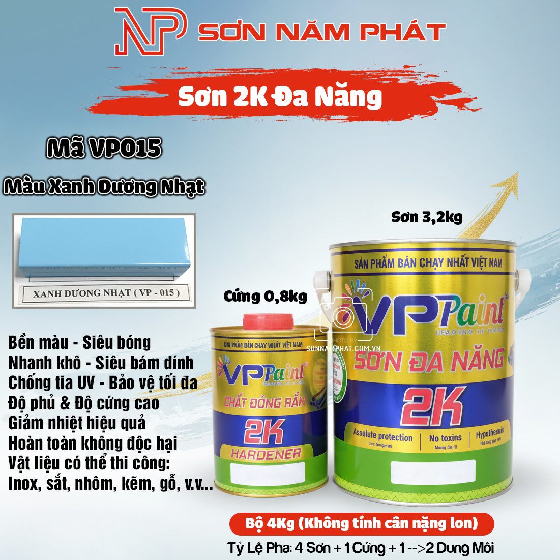 Sơn 2K Đa Năng VP015 – Màu Xanh Dương Nhạt | Bộ 4kg | Sơn Năm Phát