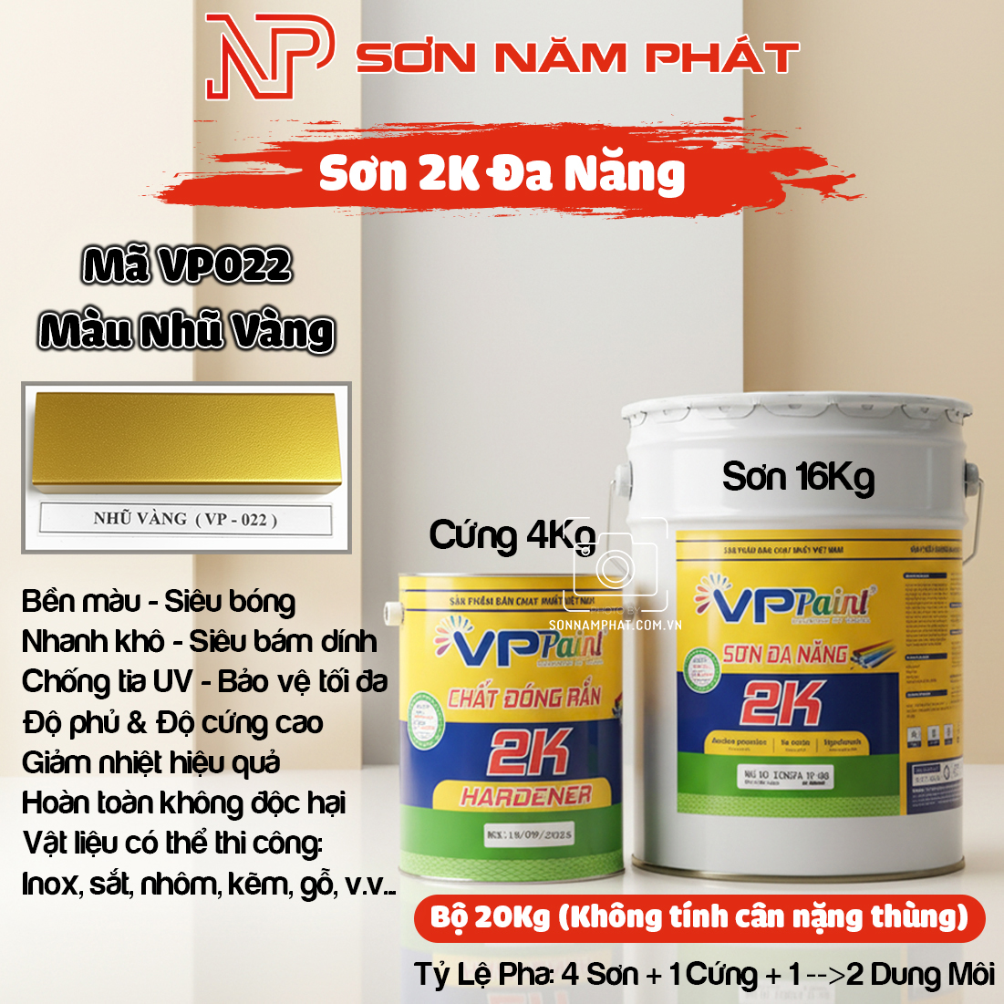 ⭐ Sơn 2K Đa Năng VP022 – Màu Nhũ Vàng | Bộ 20kg | Sơn Năm Phát