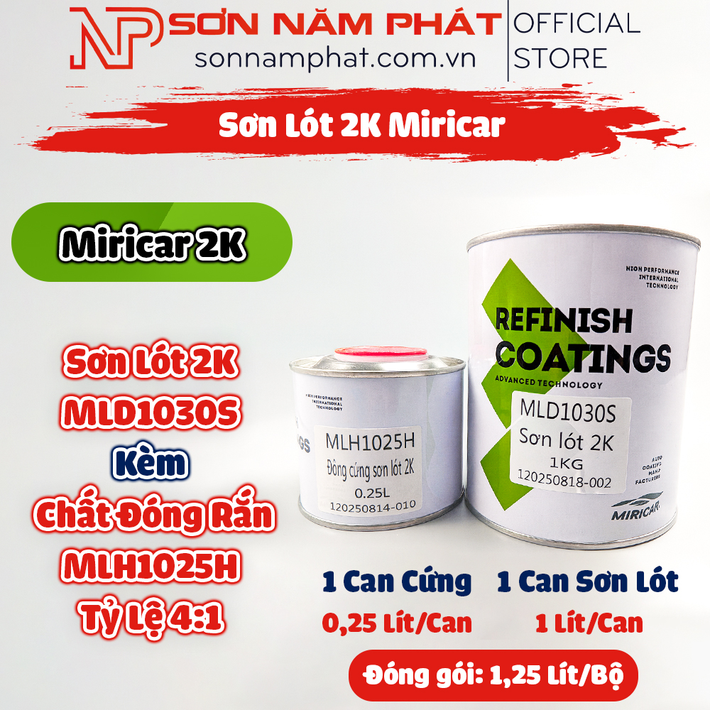 0982.710.451 0345.239.339 Địa Chỉ: 89 Lê Hồng Phong, Phường 1, Thành Phố Bảo Lộc, Lâm ĐồngSơn Lót 2K Miricar MLD1030S Kèm Chất Đóng Rắn MLH1025H (Tỷ Lệ 4:1) Bộ 1,25 Lít