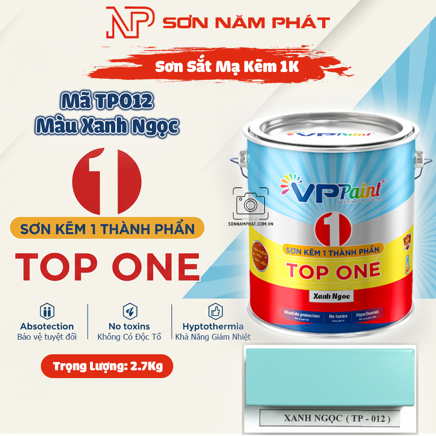 Sơn Sắt Mạ Kẽm 1K TOP ONE Mã TP012 – Màu Xanh Ngọc | 2,7Kg | VPPaint