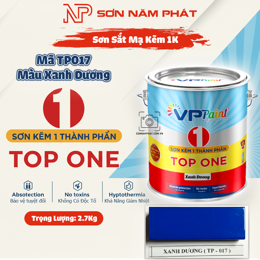⭐ Sơn Sắt Mạ Kẽm 1K TOP ONE Mã TP017 – Màu Xanh Dương | 2,7Kg | VPPaint