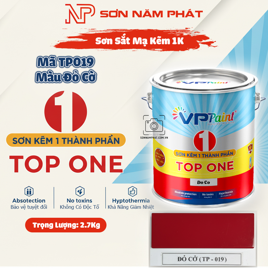 Sơn Sắt Mạ Kẽm 1K TOP ONE Mã TP019 – Màu Đỏ Cờ | 2.7Kg | VPPaint