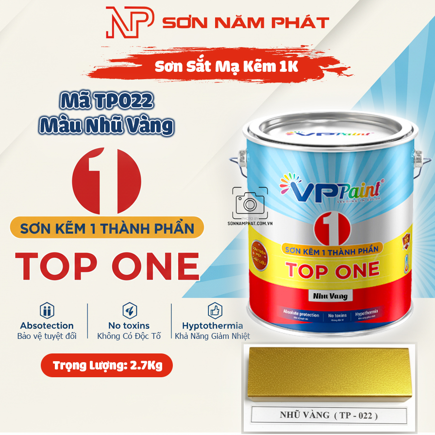 ⭐ Sơn Sắt Mạ Kẽm 1K TOP ONE Mã TP022 – Màu Nhũ Vàng | 2.7Kg | VPPaint