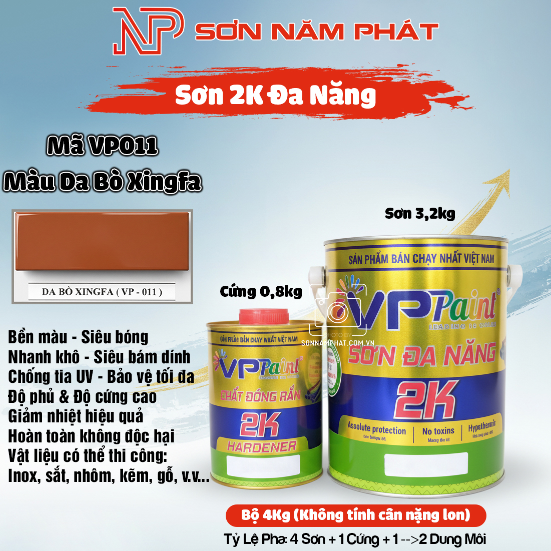 Sơn Sắt Mạ Kẽm 2K Đa Năng VP011 – Màu Da Bò Xingfa là dòng sơn hai thành phần cao cấp gồm Sơn màu + Chất đóng rắn, được sản xuất trên dây chuyền hiện đại theo tiêu chuẩn châu Âu.