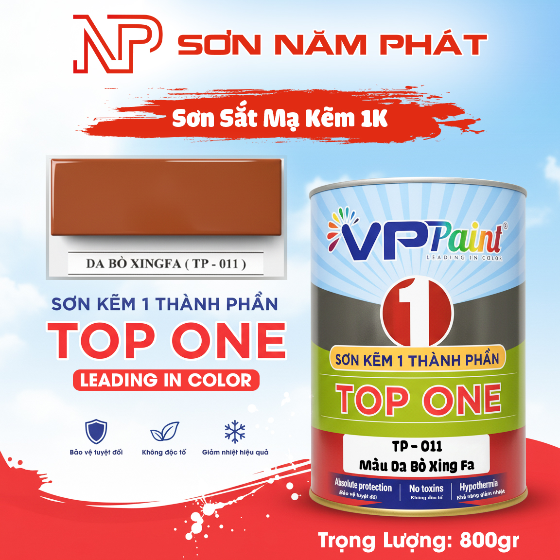 Sơn Tàu Thuyền 1K TP011 Màu Da Bò XingFa Viet Paint 800gr là dòng sơn sắt mạ kẽm 1 thành phần (1K) gốc Acrylic cao cấp, thuộc thương hiệu VPPaint – nhãn hiệu TOP ONE, chuyên dùng cho tàu thuyền, kim loại, nhôm hệ XingFa và kết cấu thép ngoài trời.