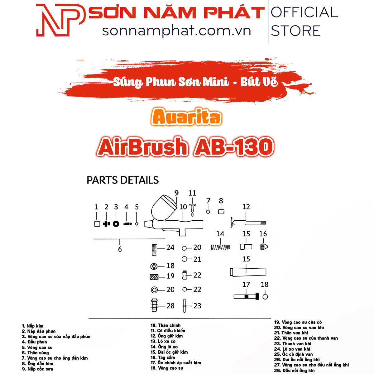 6. Cấu tạo chi tiết súng phun Auarita AB-130